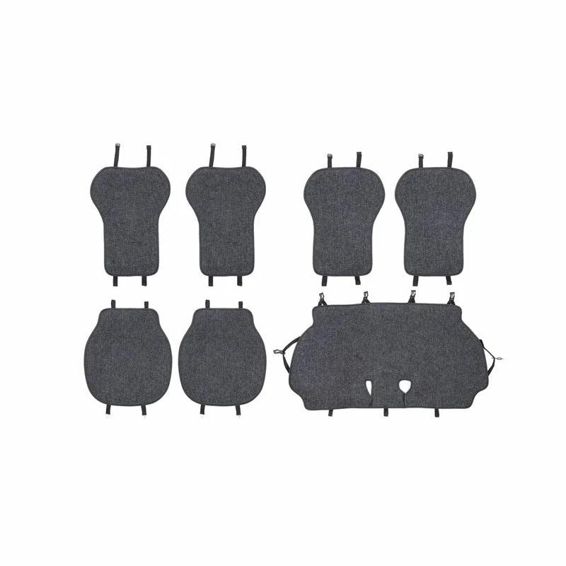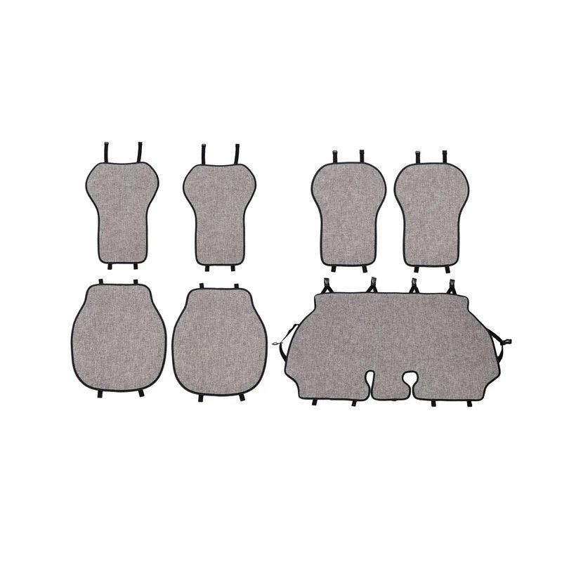 This full set of seat covers includes 1 pair of front seat covers and 1 rear seat cover.