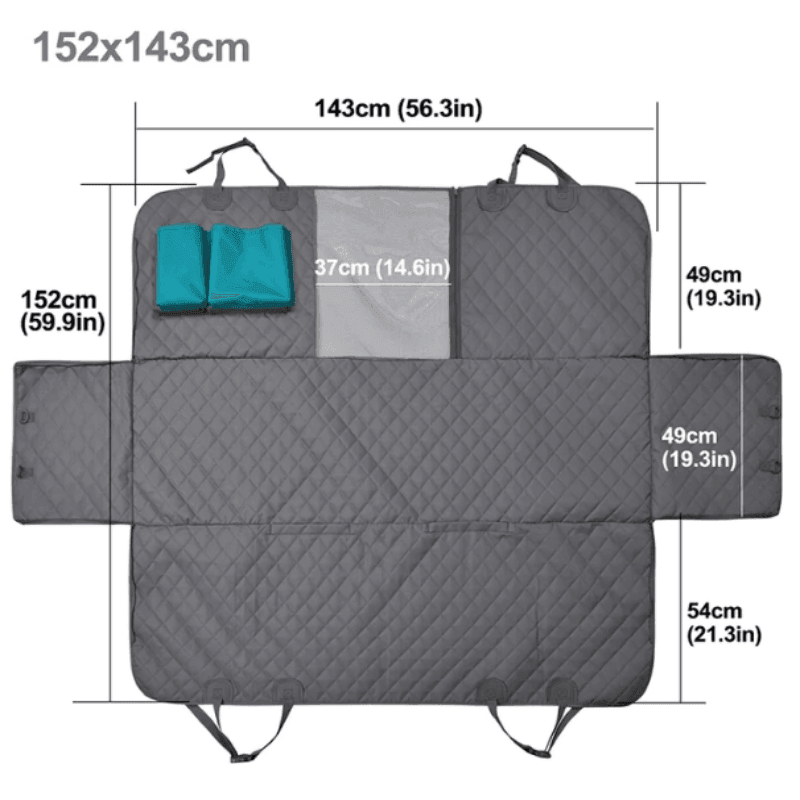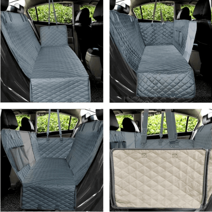 Keep Safe: To ensure your dog's safety, our dog back seat cover is held in place by four headrest straps, nonslip backing and two devices secured to the seat. Two openings can be inserted into the dog's seat belt.